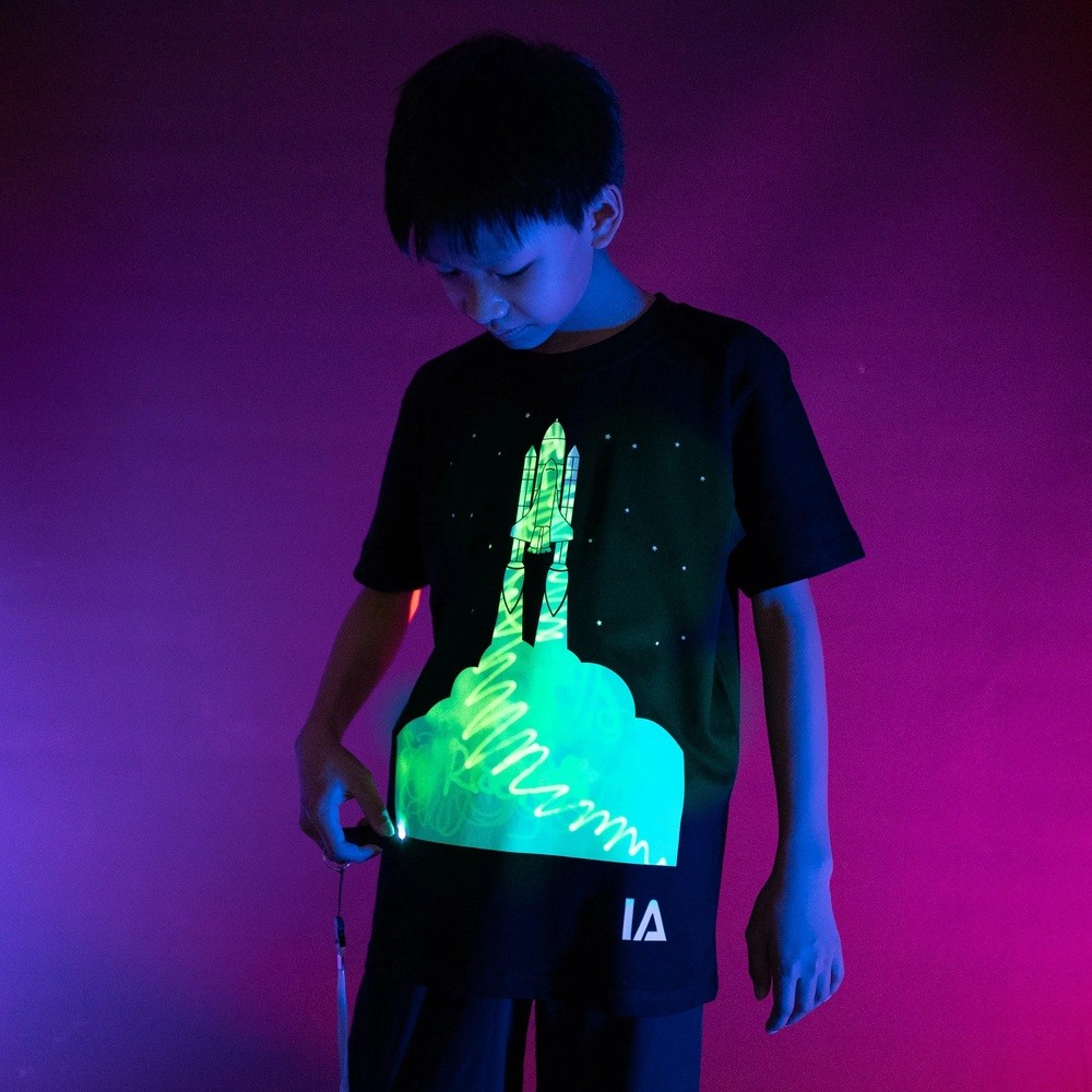 Illuminated Apparel Interactive Glow in the Dark T-Shirt Children's Light-Up Drawing Tee Xmas Gift